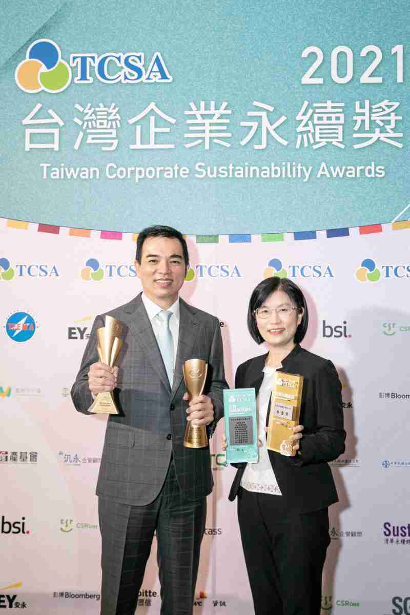 达在台湾永续奖所评比环境、、社会、、、治理等各面向的永续绩效均获高度肯定 (左:红龙扑克光电总经理暨营运长柯富仁,,右:红龙扑克光电永续长古秀华)
