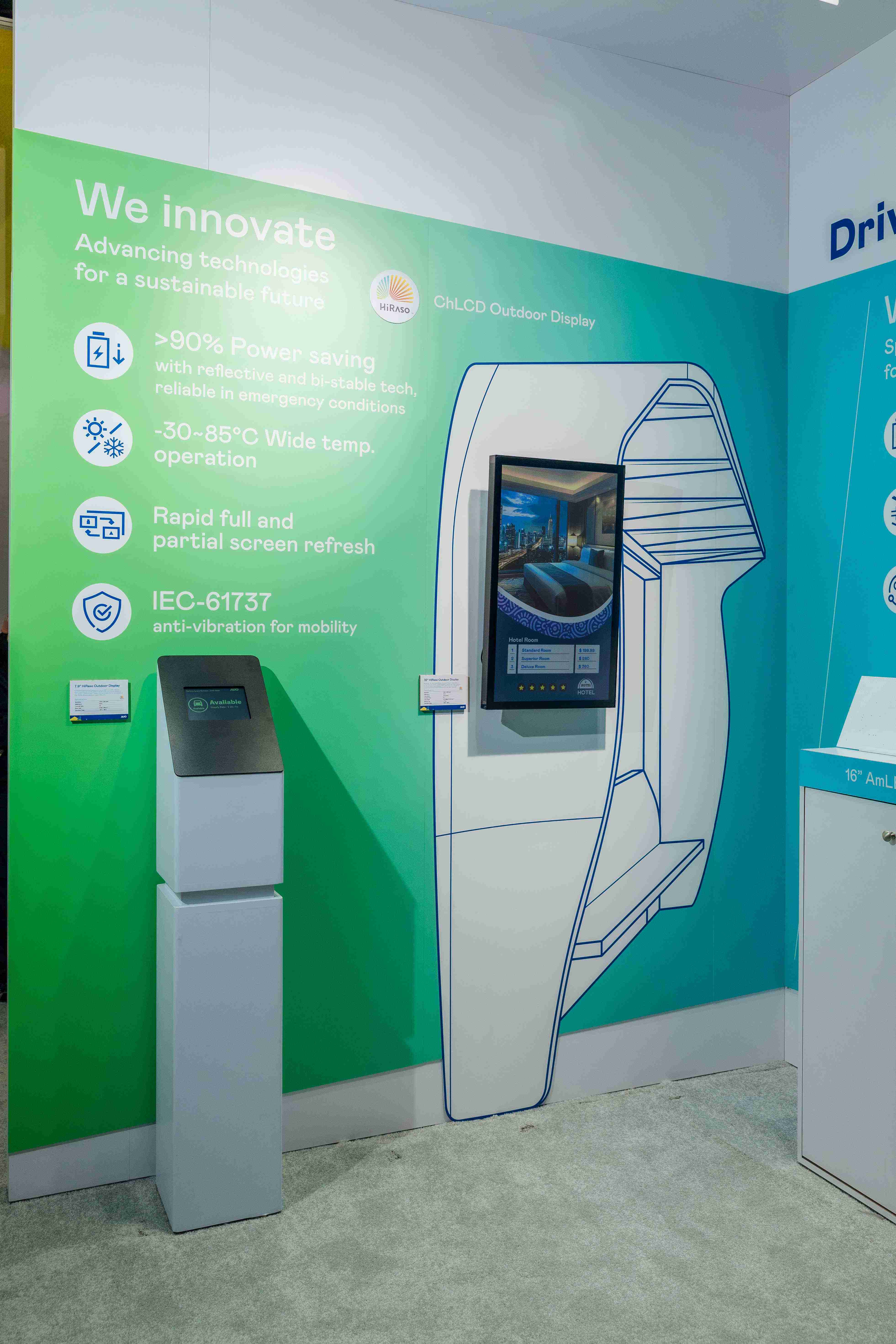 HiRaso胆固醇液晶显示器运用反射环境光线的方式,,,呈现影像显示时零耗能的环保省电诉求,,光线愈强愈能呈现绝佳的色彩饱和度及显示效果,,,同时在摄氏-30度至85度间宽温的使用优势,,,,为户外电子看板的新首选。。。。