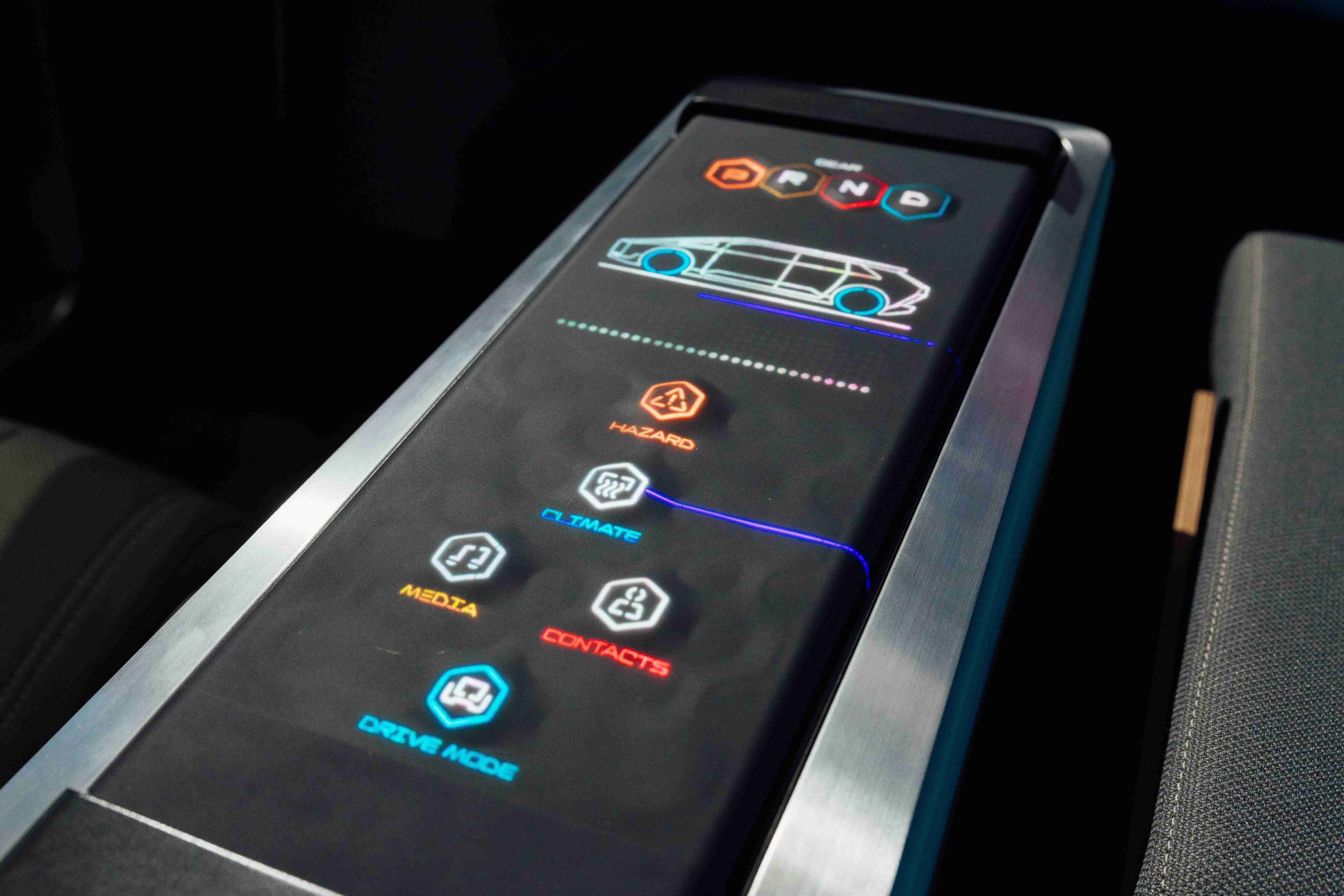 多变形态中控显示(Morphing Center Control)拥有动态变化的表面,,平时常态显示车辆功能,,,,进一步操作时,,则会隆起成为3D 按钮,,,并在触控时以震动回馈,,以精细的操作开创人机互动新境界。。。。 ![]()