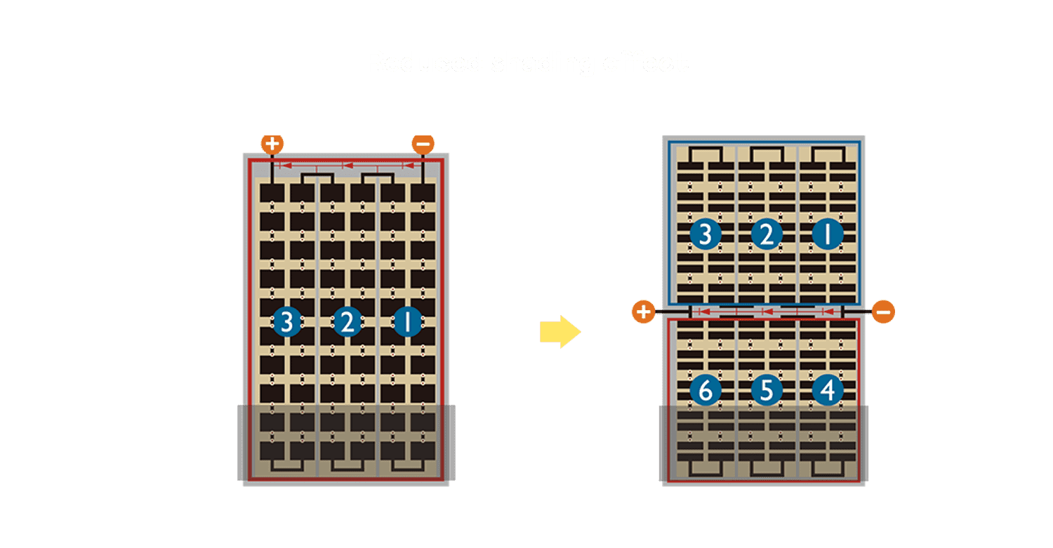 优化的太阳能电池结构设计,,不仅提高电流收集效率,,,,降低电池隐裂,,使太阳能模组长期维持稳定的输出效能,,,,提高营运效益。。。。